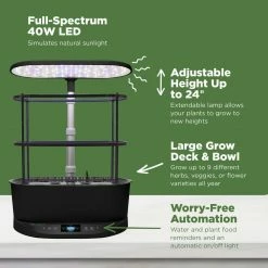 - Automatic timer makes sure the lights go on and off at exactly the right time, and the digital screen displays your garden’s vital statistics and gives you reminders for when to add things like water and plant food