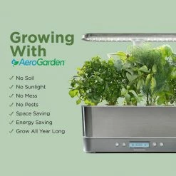 - AeroGarden Harvest Elite Slim hydroponic garden grows up to 6 different herbs, vegetables, or flowers indoors and year-round, without soil