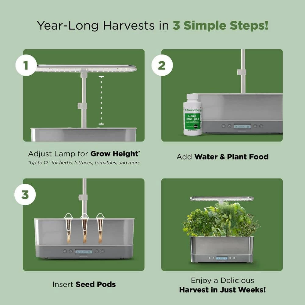 - AeroGarden Harvest Elite Slim hydroponic garden grows up to 6 different herb, veggie, or flower varieties indoors and year-round, without soil