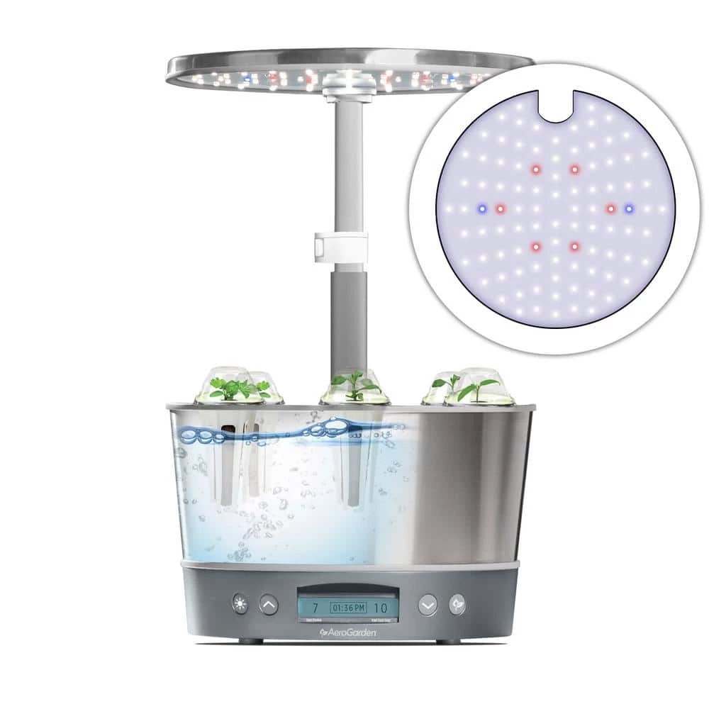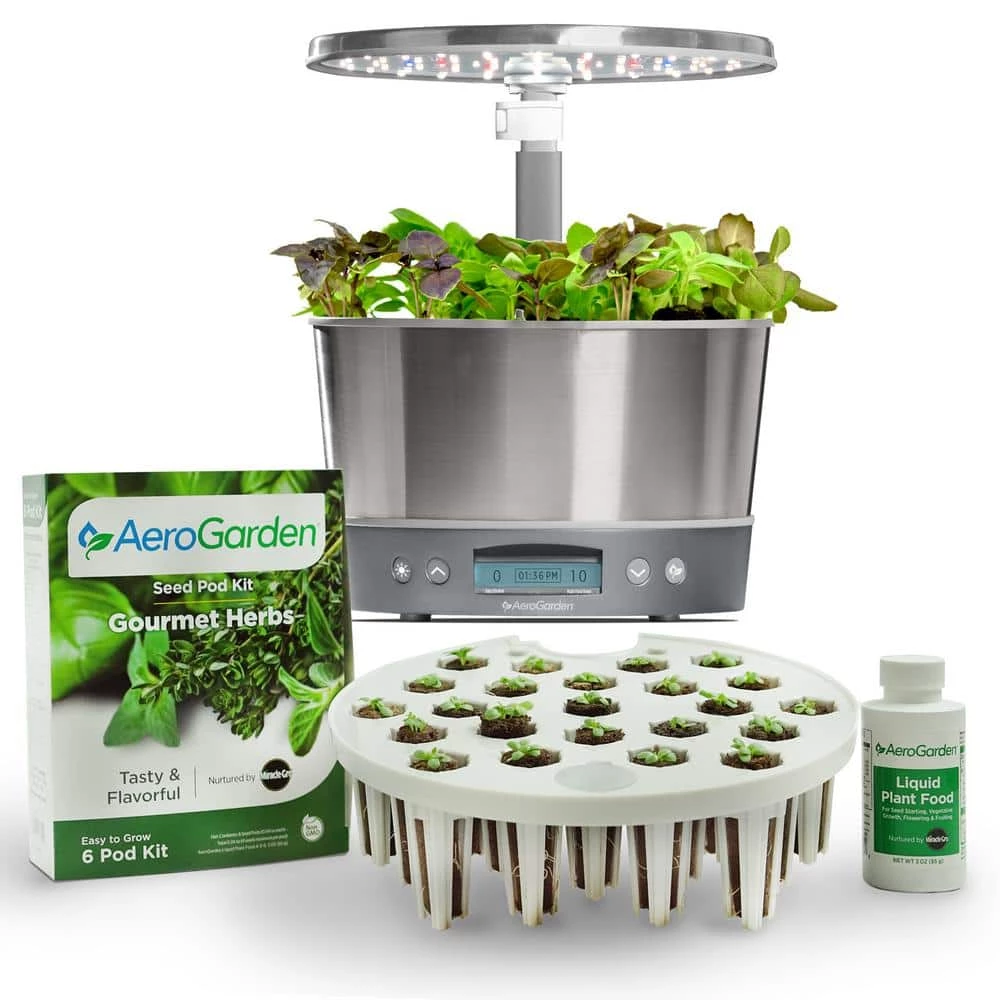 The Harvest Elite 360 garden and Seed Starting System bundle lets you germinate up to 23 seedlings indoors, getting you ready for Spring planting in spite of the cold weather. You’ll love the Harvest Elite 360s circular, compact shape and beautiful stainless steel finish, and its easy to transplant your seedlings from the garden into your outdoor beds when the weather warms. The patented liquid nutrients and high powered LED lighting system give your seedlings everything they need to be ahead of the class come Spring, while your countertop stays neat and clean. Plus, when your done with your seedlings, you can keep growing endlessly fresh herbs and veggies indoors with the Harvest Elite 360s standard grow deck and AeroGarden seed pods.
