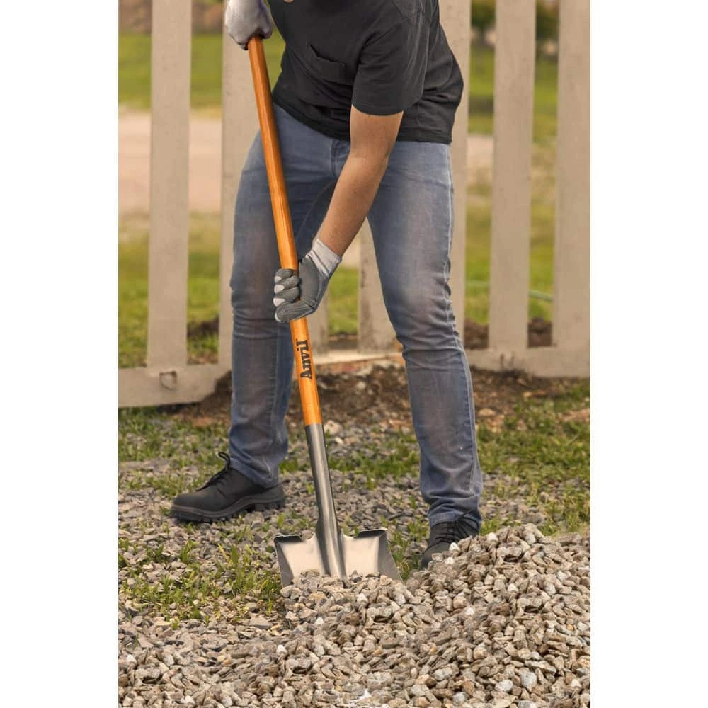 The Anvil wood handle transfer shovel is made of a high-quality carbon steel and the head also features a foot step. The square blade design is optimal for transferring loose material. Ideal tool for garden or lawn work.