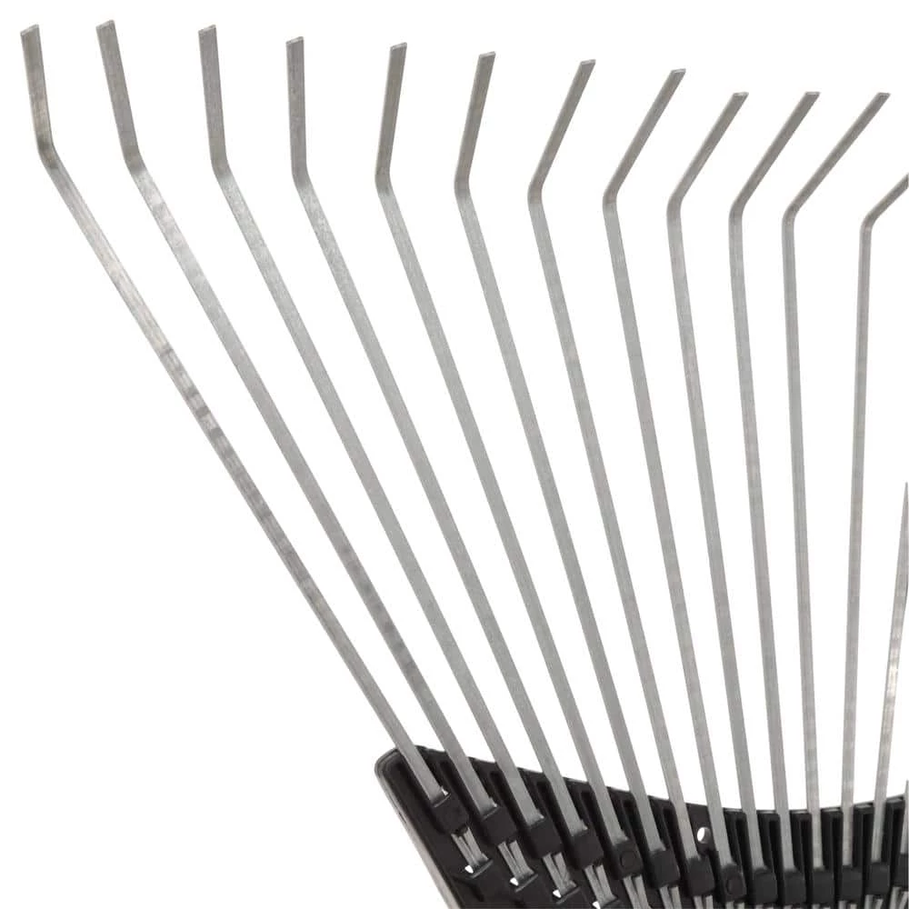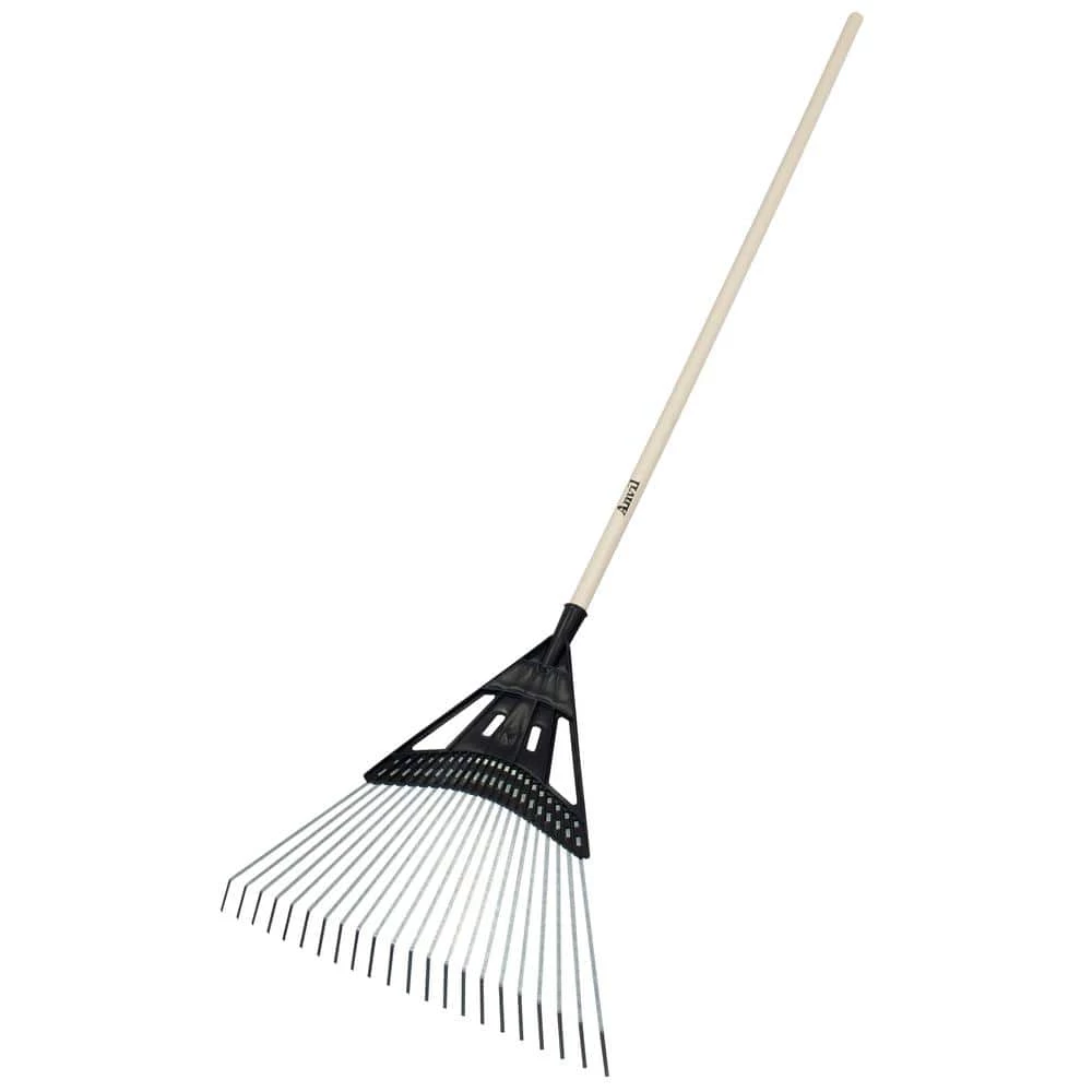 This poly-steel lawn rake combines the lightness of plastic with the durability of steel. The plastic frame is lightweight for-hours of use, while the 22 steel tines will hold up for-years to come. This rake is good for raking leaves, thatch and debris from lawns.