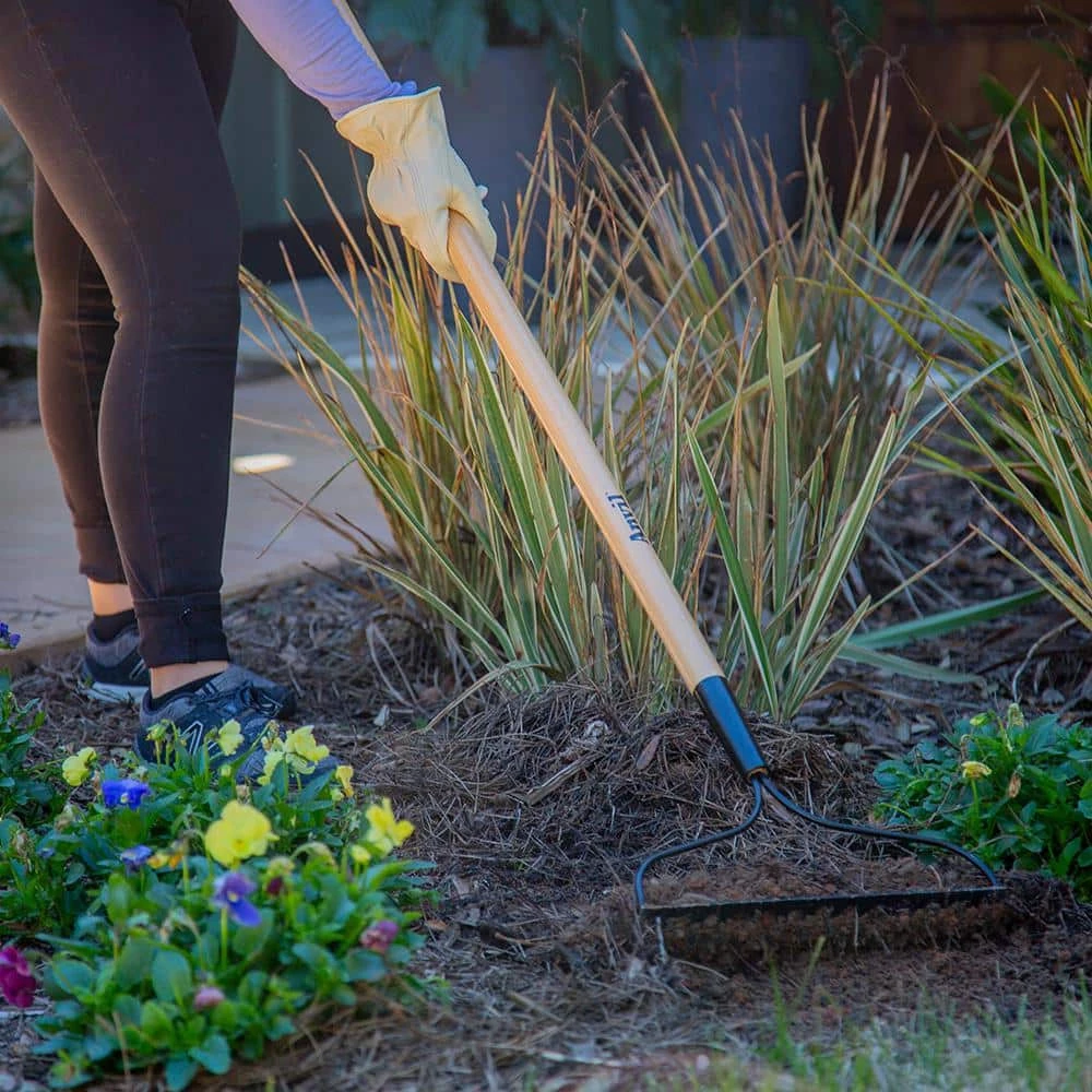 This bow rake is a good quality rake that is designed for light-duty jobs around the lawn and garden. The tine side of the rake head is used to break up and cultivate the soil. The back side of the rake is great for leveling soil and other materials.