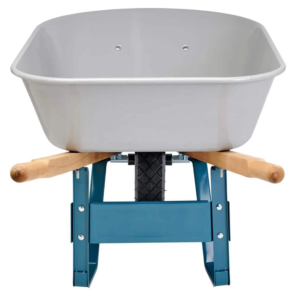 - Tip-resistant steel leg stabilizers keep wheelbarrow balanced during loading and unloading