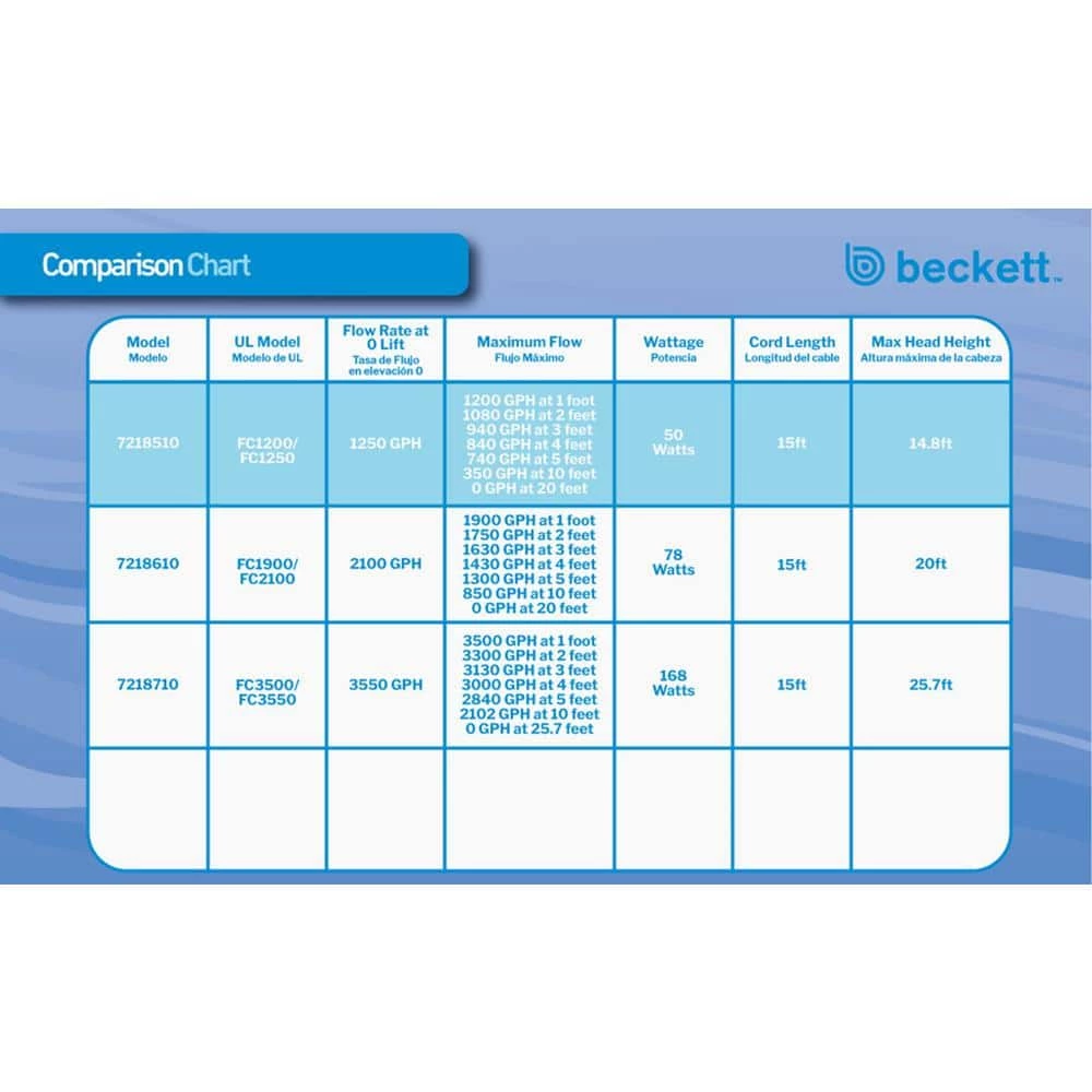 Enhance your backyard pond with moving water using the BECKETT Waterfall Pump with Auto-Shutoff. Adding this durable pump to your water feature will help you create a small to medium waterfall, for a lovely garden focal point. Its magnetic drive, energy efficient design uses considerably less power than a traditional pump, and is specifically crafted for continuous, submerged use. Its hardy, plastic casing ensures durability, and the generous front screen protects the inlet from debris.