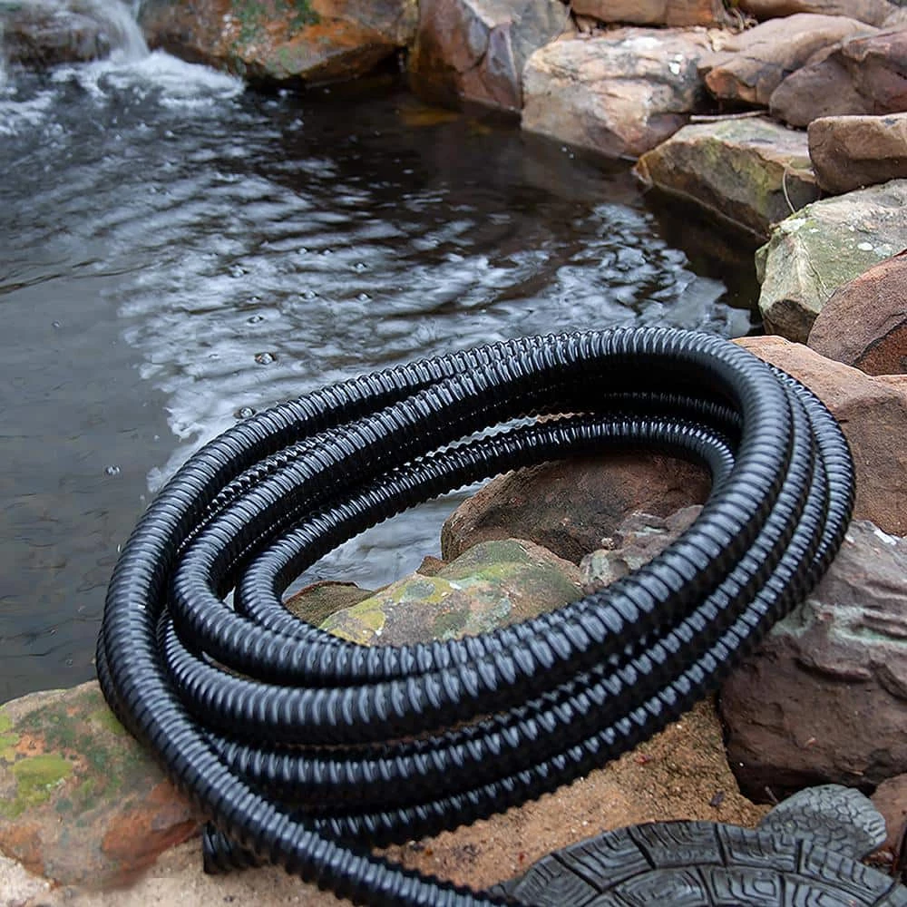 This Beckett 3/4 in. Corrugated Tubing is a great tool for adding small streams and waterfalls to your water garden. Its corrugation feature helps prevent kinks from rocks and other decorative materials. Black in color to help prohibit algae build-up.