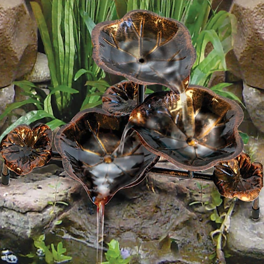 Unique metal leaf spitter to accent any pond. It provides a subtle amount of trickling water for a soothing ambiance. Nicely dresses up any pond.