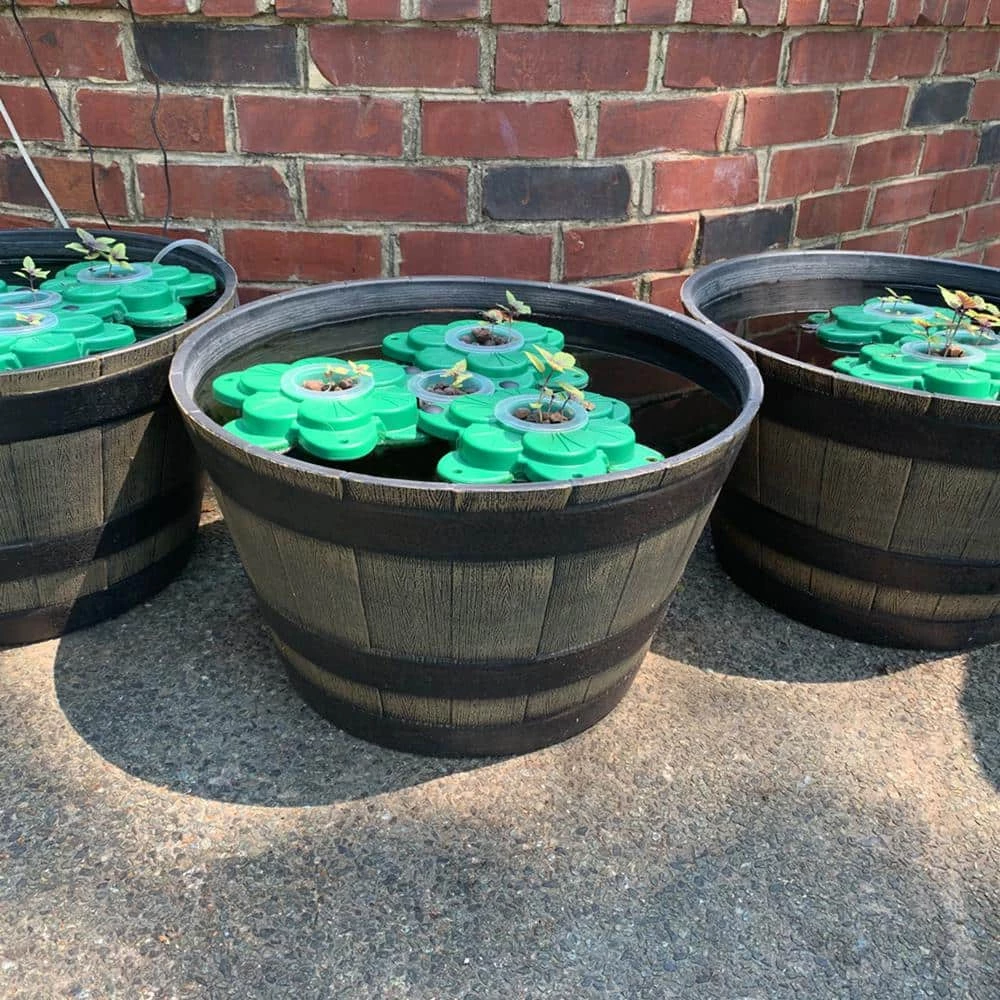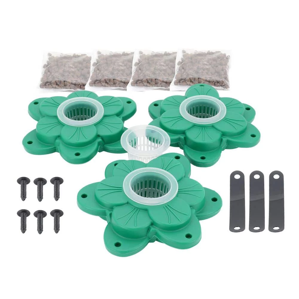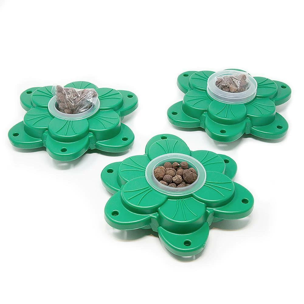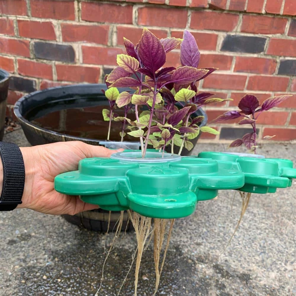 Grow herbs, vegetables and flowers using aquaponics. Aquaponics is the combination of growing fish and plants together in an integrated system. The fish create a food source for the plants. The plants naturally filter the water for the fish. Before you begin, your pond should be healthy and well established with a balance of fish and aquatic plants before introducing the grow kit. For new fish ponds, please allow 6 weeks for your pond to create a natural bio-filter cycle before introducing the grow kit. We suggest these types of seeds for beginners: leafy lettuce, arugula, pak choi, kale, spinach, swiss chard, basil, mint, chives, watercress, parsley, lemongrass, sage, oregano. You can also add flowering plants into the mix like daisies, zinnias and marigolds. Simply place the growing media in the baskets, and place the seeds (not included) on top. Trickle some of the pond water on top of the seeds. Place the floating system in the water and watch it grow.