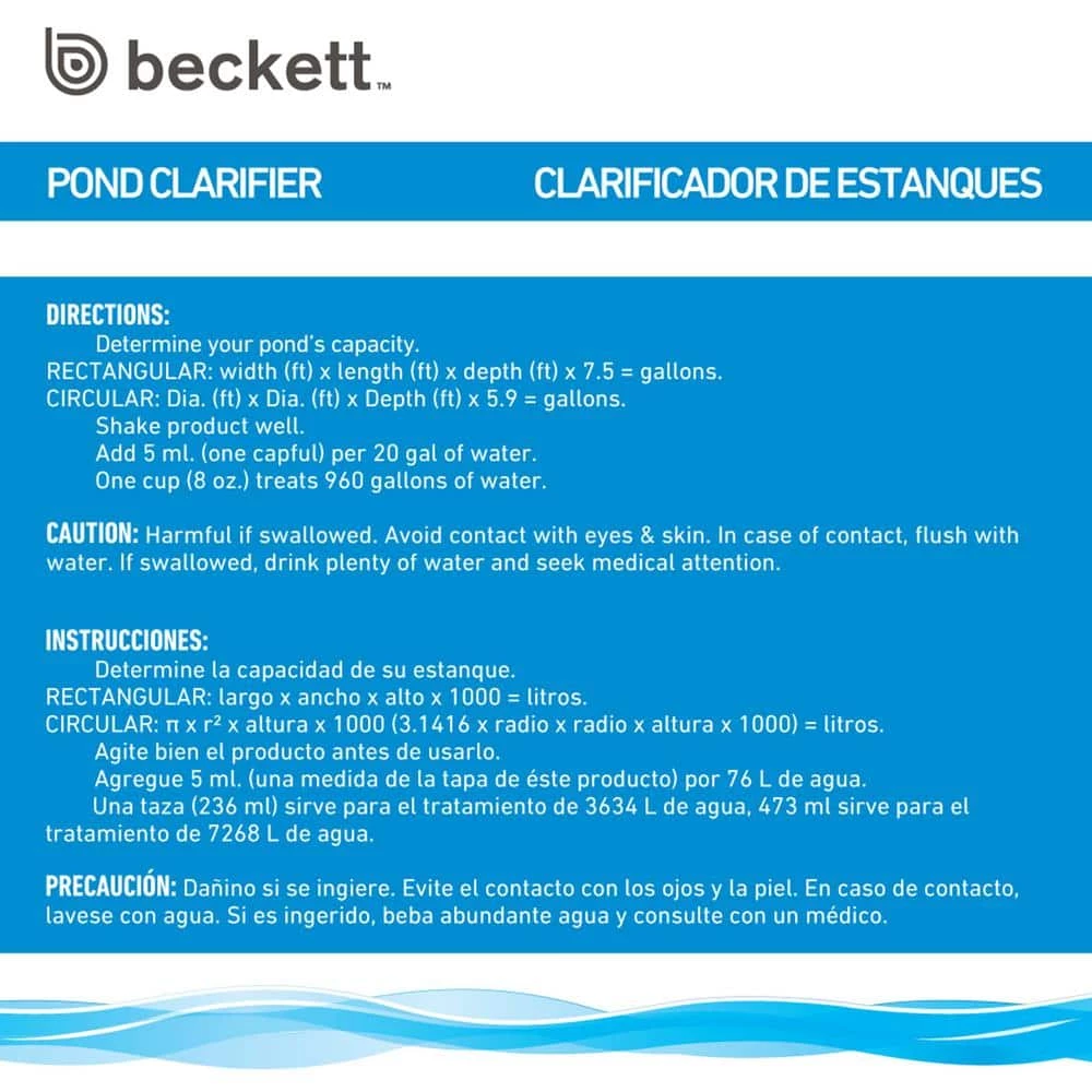 This Beckett 16 oz. Pond Clarifier helps to clear the cloudy water in your garden pond. It settles suspended particles to aid in filtering and is safe for plants and fish. It can be used with other pond treatments to keep your pond clean and clear.