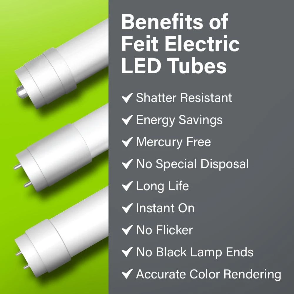 Upgrade to Feit Electric’s T48/GROW/LED Full Spectrum Type A (Direct Replacement) Non-Dimmable LED Grow Light Tube and grow stronger, healthier plants from seed to full maturity. This Type-A light tube replaces T8 and T12 fluorescent and LED tubes, fitting into most existing ballasts for quick and easy installation. No rewiring is necessary. It uses both the 450nm blue spectrum and 660 nm red spectrum for superior photosynthetic response and higher yields. The cooler running LED light allows you to place it closer to plants without fear of leaf burn. It has a PAR value of 40 for optimum growth of everything from herbs and succulents to potted flowers, fruits, vegetables, and more. It’s rated for high humidity use, perfect for indoors and outside. Grow your way: horizontally, vertically, hydroponic, or soil. The 1600-lumen Feit Electric LED Full Spectrum Grow Light Tube offers limitless possibilities. It is mercury-free, with a shatter-resistant coating for safe and easy disposal. With lower energy costs and 50,000 hours of life (over 45 years based on 3 hours of daily use) compared to traditional fluorescents, you can grow more and still save on utility bills and maintenance. The estimated energy cost is only $2.17 per year. Never worry about lack of sunlight or season changes again. Grow anywhere, year-round.