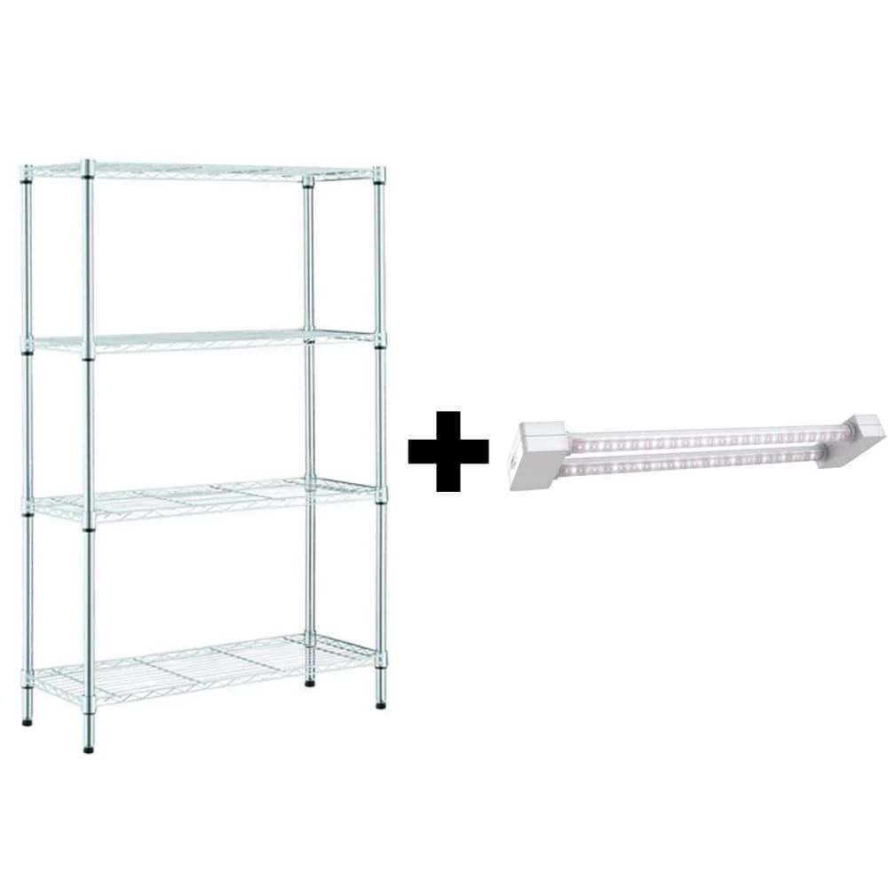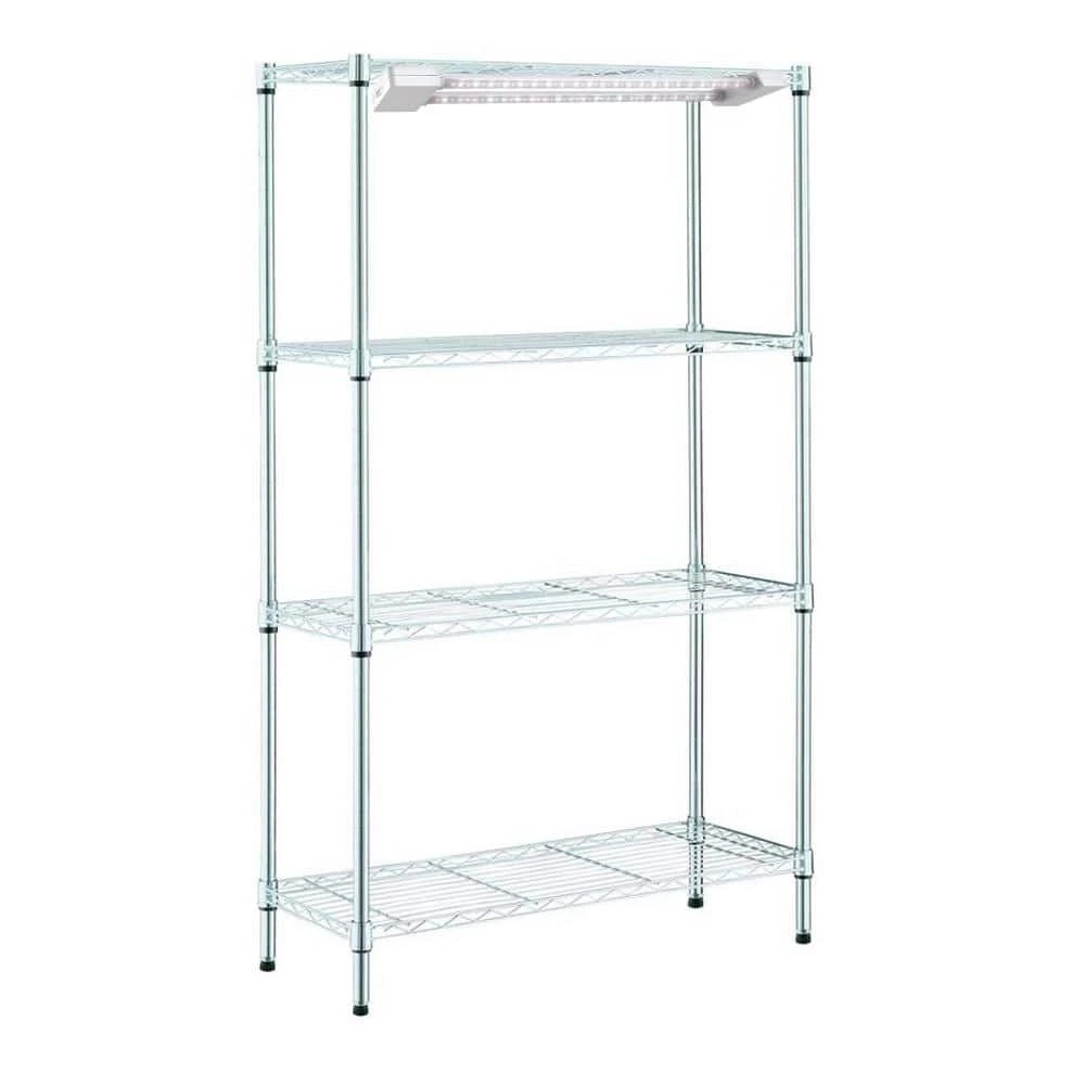 This Indoor Grow Light System bundle pairs Feit Electric’s 2 ft. Dual LED Full Spectrum Grow Light with the HDX 4-Shelf Storage unit to provide an easy way to create your own Grow Light System. Feit Electric’s 2 ft. Dual LED Full Spectrum Grow Light uses 19-Watt and has an ultra-light weight design that can be used in hanging or flush mount installation. This no-humming LED fixture emits precise wavelengths and color for superior photosynthetic response in the 450 nm blue spectrum that is preferred for vegetative growth. There are no lamps to dispose of or replace and the 2 ft. Dual Lamp prevents burning of leaves compared to high pressure sodium lamps. Durable smooth edge housing and light weight design facilitates the installation process. Up to 8 of these fixtures can be linked together with its 5 ft. cord enabling easy and flexible runs. This bundle includes two 6 in. hanging wire harnesses, a 5 ft. plug-in cord, easy on/off light switch and an HDX 4-Shelf Storage unit. The HDX 4-Shelf Storage Unit offers sturdy, reliable shelving and is ideal for hanging the fixture while also creating storage space in any room. The heavy-duty shelving unit can support up to 350 lbs. per shelf, for optimal use in kitchens, pantries, utility rooms, warehouses, and garages, featuring tubular steel construction with a durable chrome finish. All 4 shelves can be easily adjusted to ensure items fit perfectly, and the unit can be conveniently assembled without any tools.