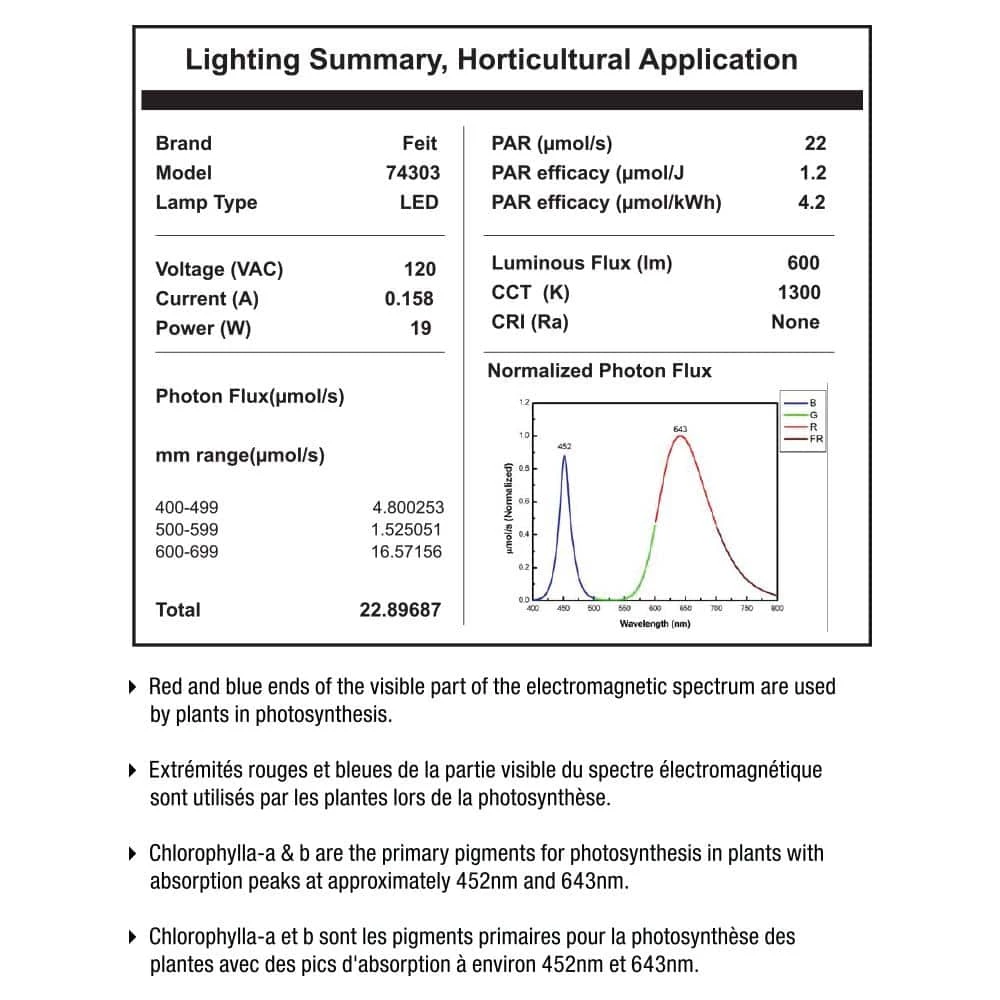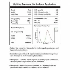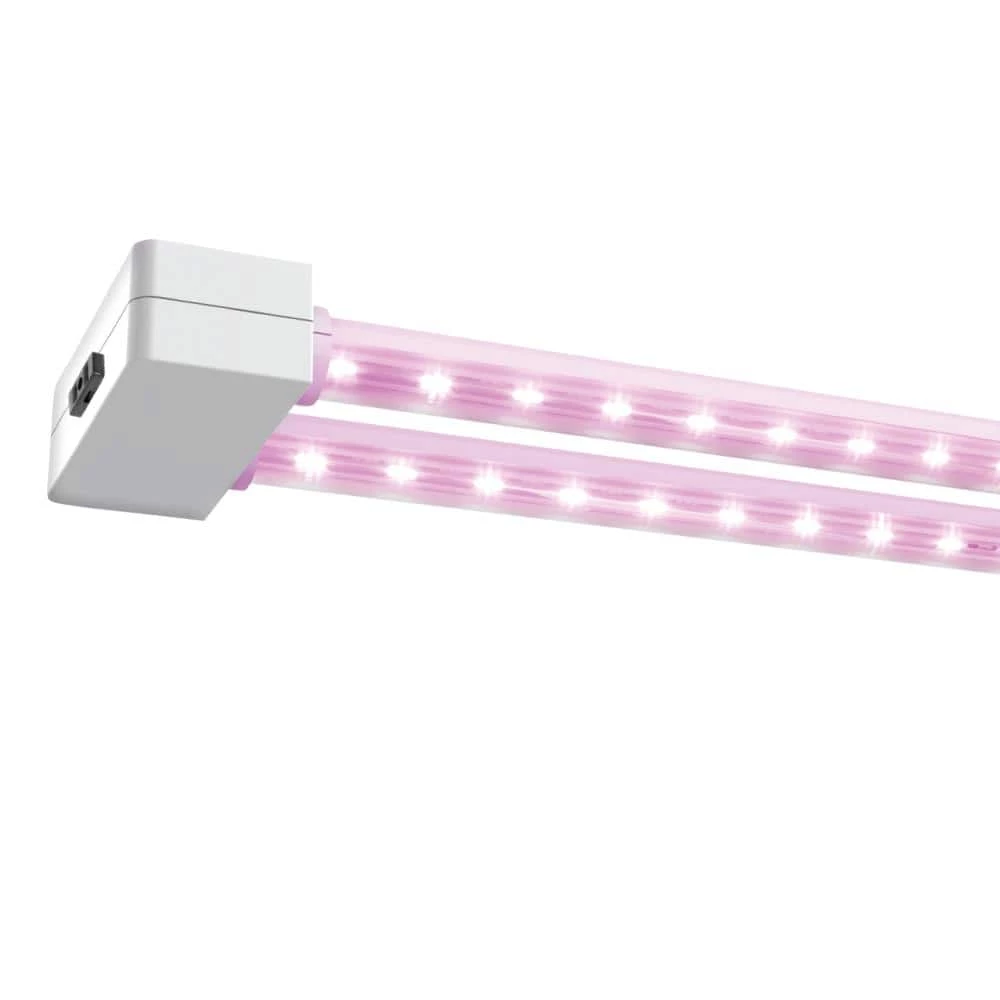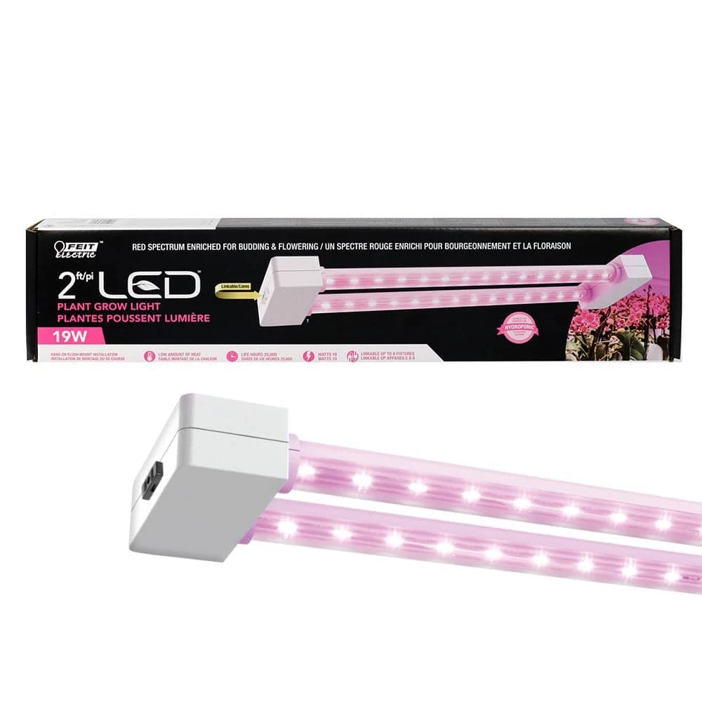 Feit Electric’s 2 ft. Dual LED Hydroponic Grow Light only uses 19-Watt and comes fully assembled with an ultra-light weight design that can be used in hanging or flush mount installation. This no-humming LED emits precise wavelengths and color for superior photosynthetic response in both the 450 nm blue with majority in the 655 nm red spectrum preferred for budding and flowers. There are no lamps to dispose of or replace with this 2 ft. Dual lamp with its cool operation that prevents burning of leaves compared to high pressure sodium lamps. Includes two 6 in. hanging wire harnesses as well as a 5 ft. plug-in chord and easy on/off light switch. Durable smooth edge housing and light weight design facilitates the installation process. Up to 8 of these fixtures can be linked together with its 5 ft. cord enabling easy and flexible runs.