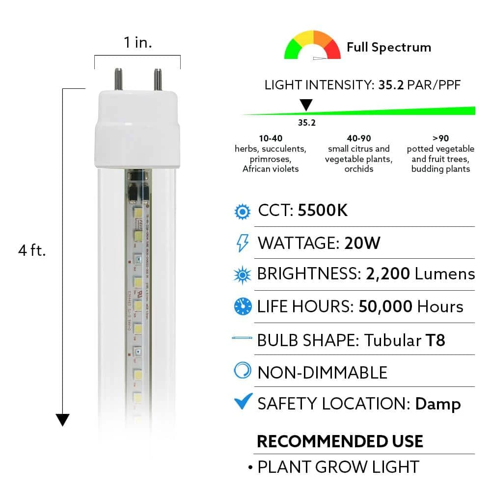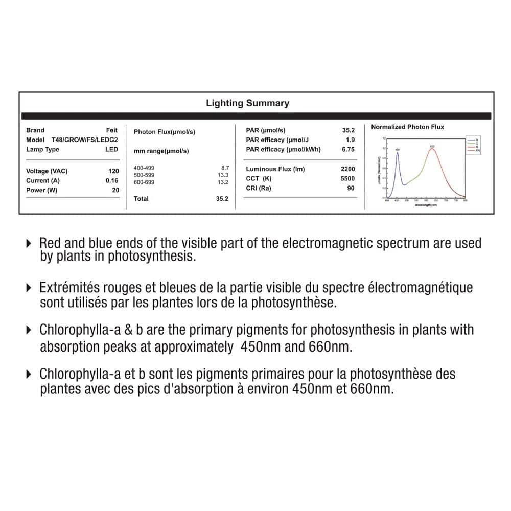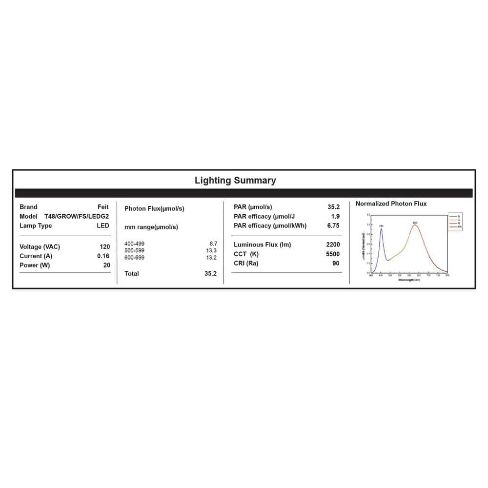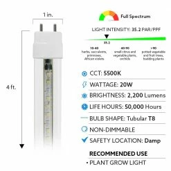 Upgrade your grow light fixtures and grow better, stronger plants with the Feit Electric T48/GROW/FS/LEDG2 LED full spectrum grow light bulb. This bulb will replace an equivalent 32 or 40 watt bulb in fixtures and is rated for high humidity, making it suitable for soil or hydroponic gardens. Full spectrum LED emits blue light-enriched wavelengths that promote photosynthetic response. Energy-efficient and low-heat, these Feit Electric grow bulbs produce even light distribution and have an average life of 50000 hours/45 years. Choose a no humming, dependable grow light for your hydroponic needs.