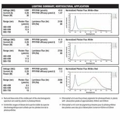 - Photo synthetically active radiation (PAR/PPF value): 39,41,43 mol/s