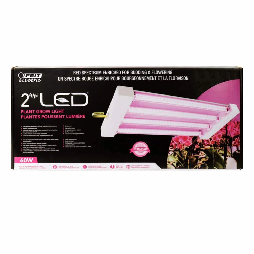 Grow better stronger plants with the Feit Electric Red Spectrum Quad 2 ft. LED Grow Light. Rated for high humidity it’s ideal for all phases of indoor plant growth and is suitable for soil or hydroponic gardens. Ours grow lamps emit more light in the useful 450nm blue and 641nm red spectrum than regular white LED bulbs and emit spectrum wavelengths and color for a better photosynthetic response. Instant full brightness lamps are integrated directly into the fixture so there are no lamps to replace. Linkable up to 3 fixtures and lightweight. Choose a no-humming dependable general purpose grow lighting fixture for your growing needs.