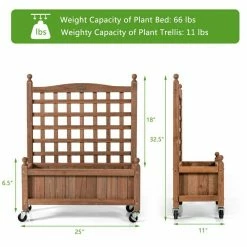 - Weight Capacity of plant bed: 66 lbs. weighty capacity of plant trellis: 11 lbs.