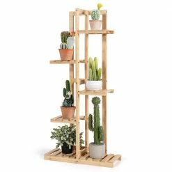 Combining elegant appearance and practical functions, our wooden plant stand will be your ideal choice. Constructed of premium bamboo painted with delicate workmanship, the flower shelf is durable and strong enough for your daily use. Open design with 5 tiers not only can hold various items, like potted plants, decorations and books, but also makes your flowers get enough sunlight. The anti-dumping device and guard bar on the back can guarantee your safety. What’s more, the plant stand is suitable for both indoor and outdoor use. Its unique modern design allows you to save space and keep your house organized.