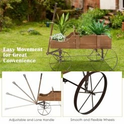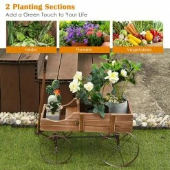 - Plenty plantation space featuring 2 planting sections, this wood wagon planter not only provides a spacious planting area for your flowers or vegetables, but also allows you to put some garden tools on it, hence, you are able to arrange them conveniently
