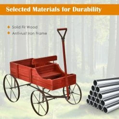 Add rustic addition to your backyard, garden, patio or indoor with this wood wagon planter. This flower plant offers ample space for you to put various flowers or vegetables. and you can store tools in the small section for great convenience. Considering its durability and stability, this wooden wagon cart is constructed of premium fir wood and sturdy metal frame. What’s more, the adjustable handle and 4 flexible wheels make you move it with ease.