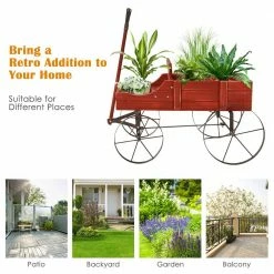 - Plenty plantation space featuring 2 planting sections, this wood wagon planter not only provides a spacious planting area for your flowers or vegetables, but also allows you to put some garden tools on it, hence, you are able to arrange them conveniently