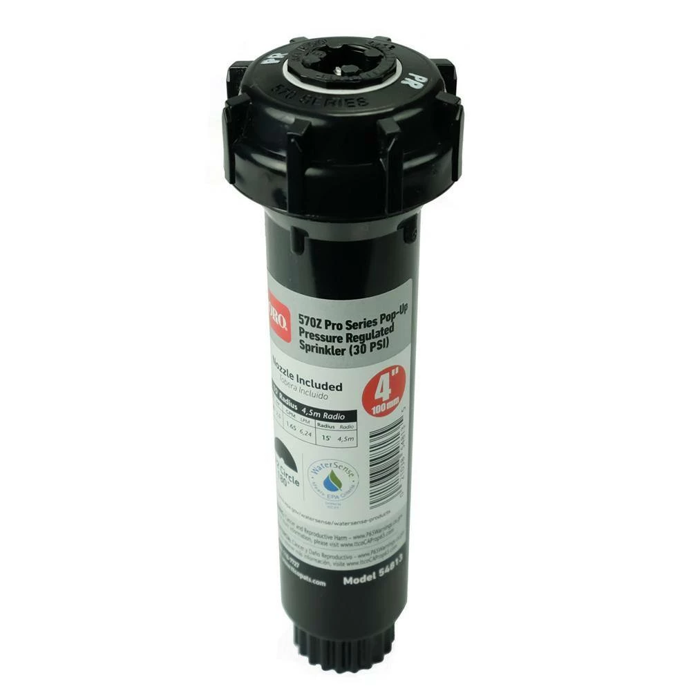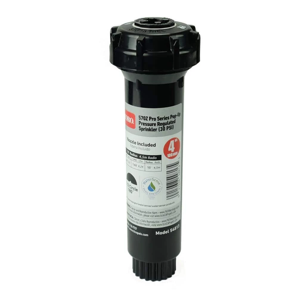 The Toro 570Z Pro Series Fixed Pop-up Pressure-Regulated Sprinkler is the ideal choice when it comes to meeting the needs of a WaterSense-certified product. With the pressure-regulating spray heads, Toro’s factory-installed pressure regulator eliminates water misting and fogging at the nozzle which can lead to rapid evaporation or water being blown away from the intended irrigation area. From the first head to the last head, the in-stem pressure regulator provides a steady outlet pressure of 30 PSI along with consistent spray head performance across the zone. Available in 3 in., 4 in., 6 in. and 12 in. models.