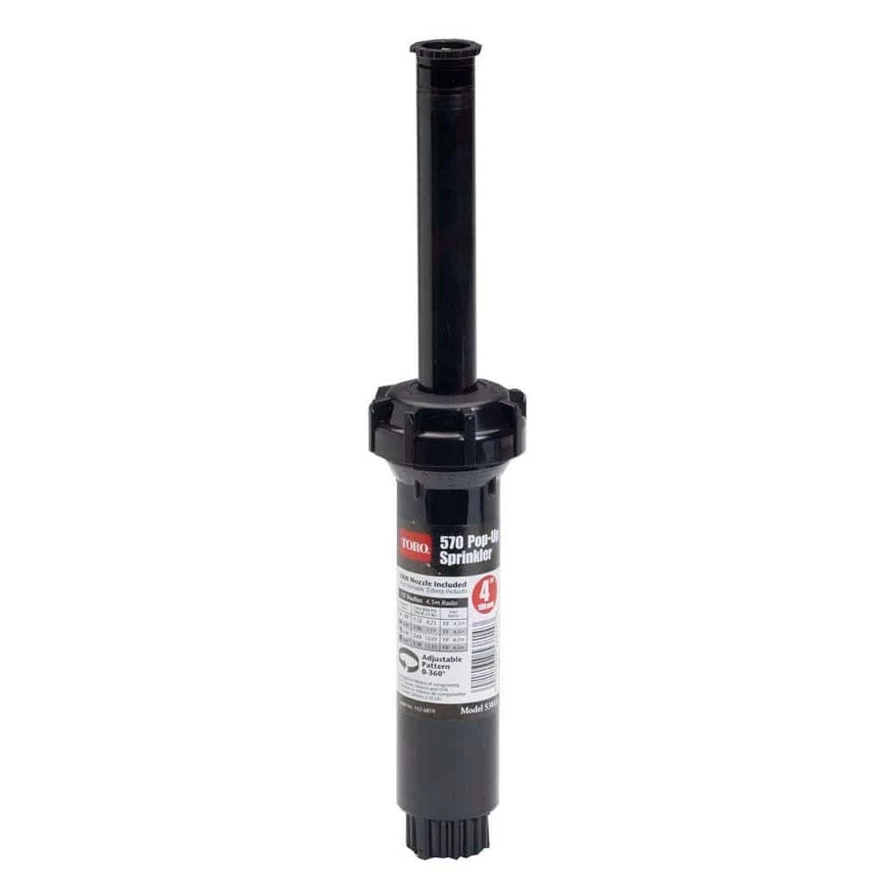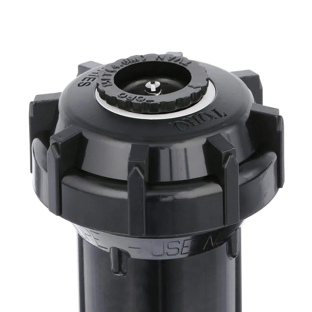 The Toro 570Z Pro Series Fixed Spray Pop-up Sprinkler with 15 ft. variable arc nozzle (VAN) adjusts from 0 Degree -360 Degree and is ideal for medium-sized lawns. Its stainless steel retraction spring is corrosion-resistant for reliable operation. It has a corrosion-resistant seal to help prevent water waste during lawn irrigation, as well as a zero-flush seal to help prevent water loss when the system starts up. The radius reduction screw and 360 Degree adjustable pattern allow you to customize the spray to your lawn’s specific needs.