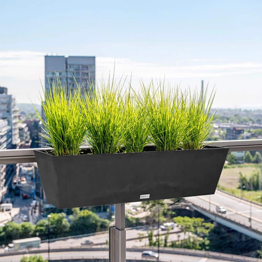 Simple and modern, the Rectangular Railing Planter is the perfect addition to any balcony, railing or deck patio. Featuring a slate finish and a clean, contemporary rectangular, tapered design, the Window Box Hanging Planter is versatile as it can be hung on railings of various sizes. Molded from a patented plastic composite, all planters are extremely durable and designed to survive all seasons. The Rectangular Railing Planter is flexible, impact resistant, sturdy yet lightweight and specifically treated with UV inhibitors to minimize fading. In addition, all Rectangular Railing Planters come with adjustable brackets to ensure that they will fit all wall spaces and railings. With this product, you can rest assured that you are receiving the perfect balance of design, durability and convenience.