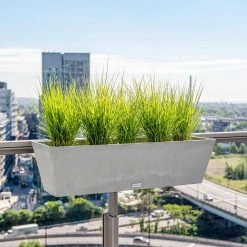 Simple and modern, the Rectangular Railing Planter is the perfect addition to any balcony, railing or deck patio. Featuring a slate finish and a clean, contemporary rectangular, tapered design, the Window Box Hanging Planter is versatile as it can be hung on railings of various sizes. Molded from a patented plastic composite, all planters are extremely durable and designed to survive all seasons. The Rectangular Railing Planter is flexible, impact resistant, sturdy yet lightweight and specifically treated with UV inhibitors to minimize fading. In addition, all Rectangular Railing Planters come with adjustable brackets to ensure that they will fit all wall spaces and railings. With this product, you can rest assured that you are receiving the perfect balance of design, durability and convenience.