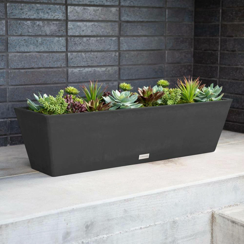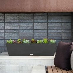 Simple and sleek, the Window Box planter is the perfect piece to refresh an empty window sill or start an herb garden. Characterized by a slate finish and a clean, contemporary rectangular tapered design, the Window Box planter is ideal to provide a touch of color to a tabletop or as a deck accent piece. Molded from a patented plastic composite, all planters are extremely durable and designed to survive all seasons. Midland planters are flexible, impact resistant, sturdy yet lightweight and specifically treated with UV inhibitors to minimize fading. With a Veradek product you can rest assured that you are receiving the perfect balance of design, durability and convenience.