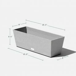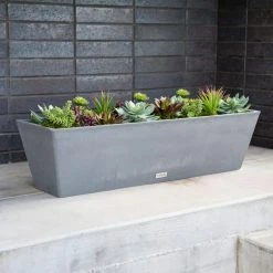 Simple and sleek, the WINDOW BOX planter is the perfect piece to refresh an empty window sill or start an herb garden. Characterized by a slate finish and a clean, contemporary rectangular tapered design, the Window Box planter is ideal to provide a touch of color to a tabletop or as a deck accent piece. Molded from a patented plastic composite, all Veradek planters are extremely durable and designed to survive all seasons. Window Box planters are flexible, impact resistant, sturdy yet lightweight and specifically treated with UV inhibitors to minimize fading. With a Veradek product you can rest assured that you are receiving the perfect balance of design, durability and convenience.