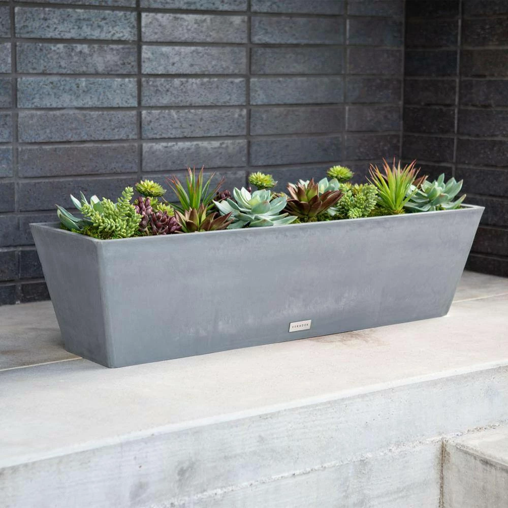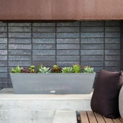 Simple and sleek, the Window Box planter is the perfect piece to refresh an empty window sill or start an herb garden. Characterized by a slate finish and a clean, contemporary rectangular tapered design, the Window Box planter is ideal to provide a touch of color to a tabletop or as a deck accent piece. Molded from a patented plastic composite, all planters are extremely durable and designed to survive all seasons. Midland planters are flexible, impact resistant, sturdy yet lightweight and specifically treated with UV inhibitors to minimize fading. With a Veradek product you can rest assured that you are receiving the perfect balance of design, durability and convenience.