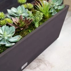 Simple and sleek, the Window Box planter is the perfect piece to refresh an empty window sill or start an herb garden. Characterized by a slate finish and a clean, contemporary rectangular tapered design, the Window Box planter is ideal to provide a touch of color to a tabletop or as a deck accent piece. Molded from a patented plastic composite, all planters are extremely durable and designed to survive all seasons. Midland planters are flexible, impact resistant, sturdy yet lightweight and specifically treated with UV inhibitors to minimize fading. With a Veradek product you can rest assured that you are receiving the perfect balance of design, durability and convenience.