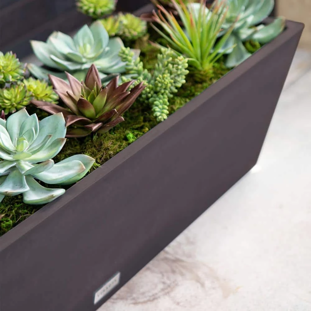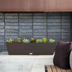 Simple and sleek, the Window Box design is the perfect piece to refresh an empty window sill or start an herb garden. Characterized by a marbled finish and a clean, contemporary rectangular tapered design, the Window Box planter is ideal to provide a touch of color to a tabletop or as a deck accent piece. Molded from a patented plastic composite, all Veradek planters are extremely durable and designed to survive all seasons. Midori planters are flexible, impact resistant, sturdy yet lightweight and specifically treated with UV inhibitors to minimize fading. With a Veradek product you can rest assured that you are receiving the perfect balance of design, convenience and durability.