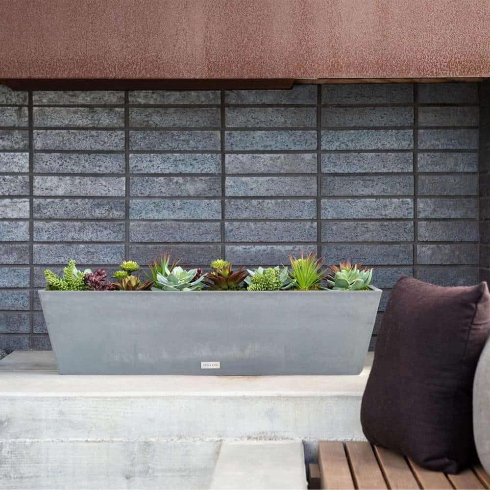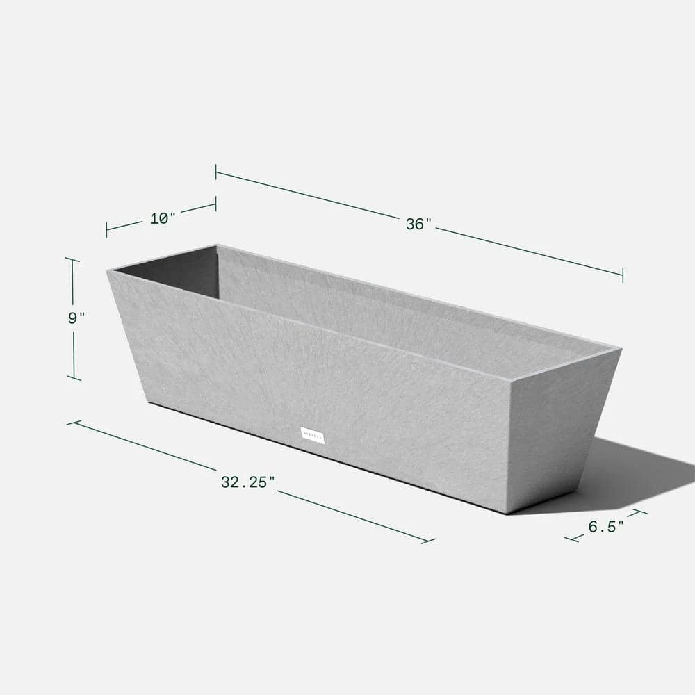 Simple and sleek, the Window Box planter is the perfect piece to refresh an empty window sill or start an herb garden. Characterized by a slate finish and a clean, contemporary rectangular tapered design, the Window Box planter is ideal to provide a touch of color to a tabletop or as a deck accent piece. Molded from a patented plastic composite, all planters are extremely durable and designed to survive all seasons. Midland planters are flexible, impact resistant, sturdy yet lightweight and specifically treated with UV inhibitors to minimize fading. With a Veradek product you can rest assured that you are receiving the perfect balance of design, durability and convenience.