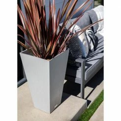 Tall, modern and distinctive, the Midland Square Black Tall Plastic Planter is the perfect addition to any front entrance. Boasting a marbled finish and sleek, tapered design, use it as a stylish piece to creatively fill empty spaces, separate rooms, line along patio railings or flank an entrance wall. Flexible, lightweight and sturdy, it was specifically treated with UV inhibitors to minimize fading. All Midland planters come equipped with a removable shelf set 13 in. below the rim of the planter- this provides the user the versatility of fully filling the planter with soil or using an interchangeable plant insert.