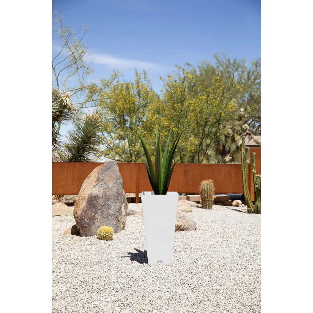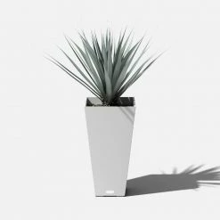 Tall and distinctive, the Midland design is the perfect addition to any front entrance. Featuring a subtle marbled finish and a modern, sleek square tapered design, the Midland planter is ideal as a patio accent or lined along an entrance wall. Molded from a patented plastic composite, all planters are extremely durable and designed to withstand the elements – winter or summer. Midland planters are flexible, impact resistant, sturdy yet lightweight and specifically treated with UV inhibitors to minimize fading. All Midland planters come equipped with a removable shelf set 13 in.es below the rim of the planter- this provides the user the option of fully filling the planter with soil or using an interchangeable plant insert. with a product, you can rest assured that you are receiving the perfect balance of design, durability and convenience.