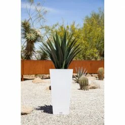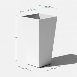 Tall and distinctive, the Midland design is the perfect addition to any front entrance. Featuring a subtle marbled finish and a modern, sleek square tapered design, the Midland planter is ideal as a patio accent or lined along an entrance wall. Molded from a patented plastic composite, all planters are extremely durable and designed to withstand the elements – winter or summer. Midland planters are flexible, impact resistant, sturdy yet lightweight and specifically treated with UV inhibitors to minimize fading. All Midland planters come equipped with a removable shelf set 13 in. below the rim of the planter- this provides the user the option of fully filling the planter with soil or using an interchangeable plant insert. with a product, you can rest assured that you are receiving the perfect balance of design, durability and convenience.