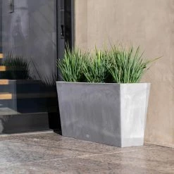 Sleek and modern, the MIDORI design is the perfect piece for creating privacy or filling an empty space. Featuring a subtle marbled finish and a modern trough tapered design, the Midori planter is ideal as a room separation piece or lined along a patio railing. Molded from a patented plastic composite, all Veradek planters are extremely durable and designed to withstand the elements Winter or Summer. Midori planters are flexible, impact resistant, sturdy yet lightweight and specifically treated with UV inhibitors to minimize fading. With a Veradek product you can rest assured that you are receiving the perfect balance of design, convenience and durability.